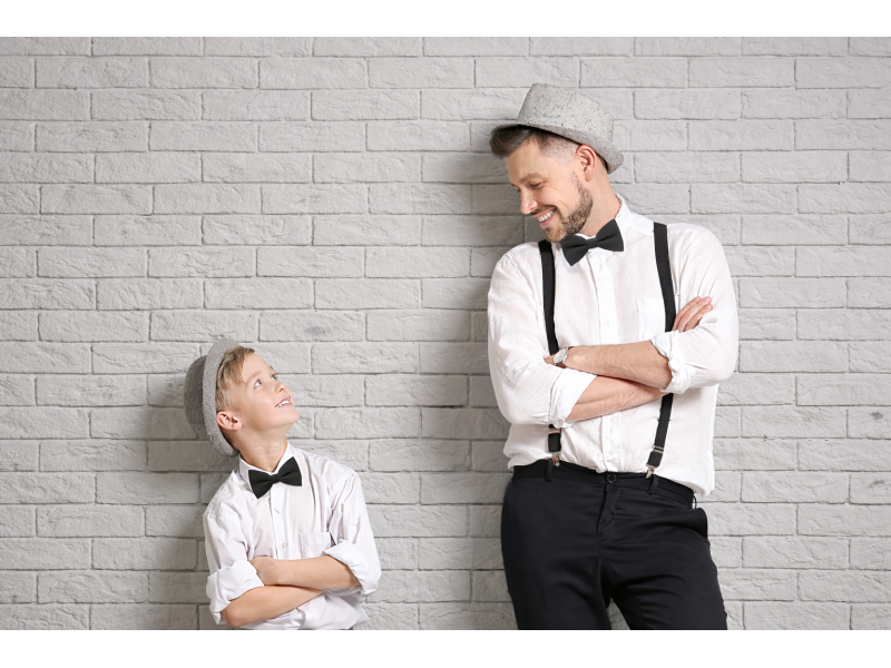 Family look часто путают с «одинаково одеться с головы до пят». Из-за этого идея выглядит либо слишком детской, либо слишком постановочной. Но в реальности самый стильный family look - это не одинаковые костюмы, а парные детали. Две вещи решают задачу лучше всего: бабочка и подтяжки. Они моментально считываются как «мы вместе», при этом не выглядят навязчиво и не требуют сложной подготовки. Самое..